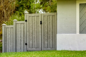 Craftsman – Tapered columns, exposed beams, and earthy tones. Best matches: SimTek or colored vinyl privacy fences in Dark Walnut, Driftwood, or Gray Wood.